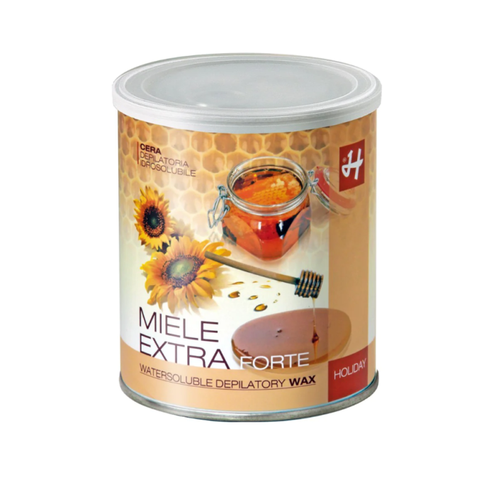 La formulazione della cera idrosolubile miele extra forte, per un’epilazione confortevole a 40° C, è frutto di un sapiente mix di componenti assolutamente semplici ma efficaci: zucchero, miele, succo di limone e acqua. È idrosolubile, quindi i residui si rimuovono semplicemente con acqua tiepida. La cera miele extra forte ha un colore ambrato e la profumazione caratteristica del caramello.